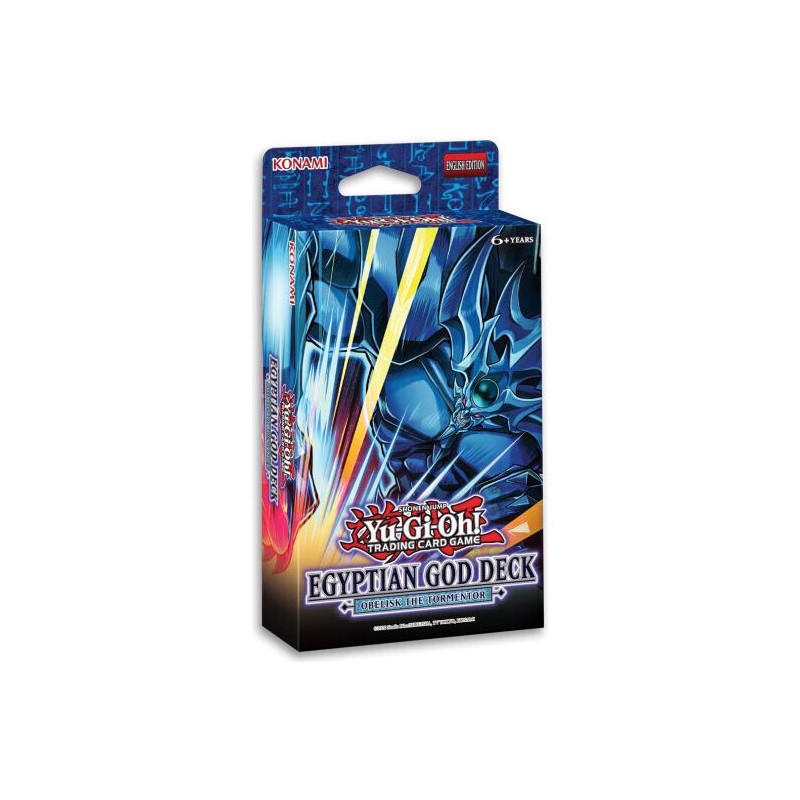 Απελευθερώστε την αληθινή δύναμη του Obelisk the Tormentor κάνοντας “Tribute” 2 τέρατα που ελέγχετε και εξολοθρεύστε τα τέρατα του αντιπάλου σας από την αρένα! Αυτή η τράπουλα χρησιμοποιεί τέρατα που αυτό-αναπαράγονται για να παρέχει “Tributes” και να προστατεύει τους Πόντους Ζωής σας καθώς πλησιάζετε να τραβήξετε το Divine Beast σας. Κάθε Egyptian God Deck περιλαμβάνει 40 κάρτες: 4 Ultra Rares, 4 Super Rares, 32 Commons, 1 Deluxe Game Mat/Dueling Guide.